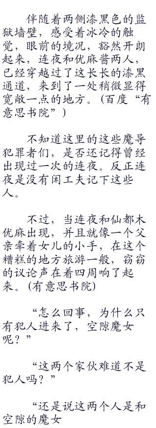当然了,即使是在这专门囚禁魔导犯罪者的‘监狱结界’之中,无论是最为强大的魔导犯罪者,连夜都对之不感兴趣。无论是弑龙一族的佣兵,能够御使高格位火焰的魔法使,亦或是能够以观察者的**在既无灵力也没有魔力的情况下生存的弦神冥驾,对于沙漠皇帝的连夜来说,也就只是那回事罢了。