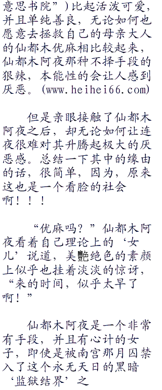而‘气质’这一点,是很难描述的一种特性,大概是一个人的由内而外的涵养体现。但是,或许是因为这古色古香的雅居的衬托,亦或者说是宽大的黑白双色十二单和服给人带来的和风感觉,但就论气质而言,仙都木优麻目前为止是很难得以和仙都木阿夜相媲美的,连夜只能够下了如此的论断。