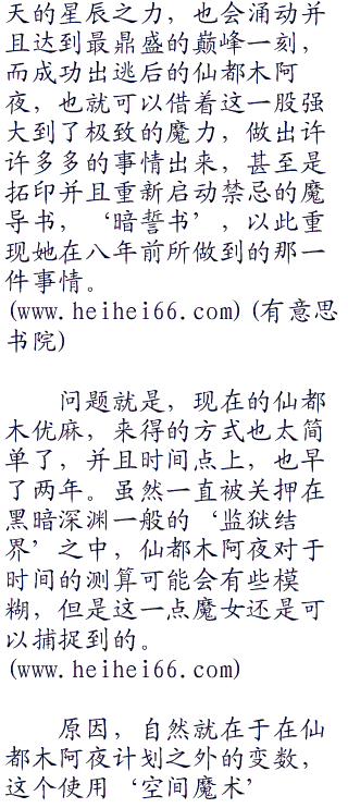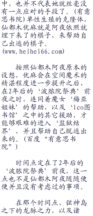 而连夜则是惊叹的把视线从优麻和魔女身上来回转移,作为单体生殖所诞生的优麻,有着与仙都木阿夜完全相同的容貌,不过,连夜却很清楚,仙都木阿夜,和仙都木优麻,单论各自的灵魂而言,完全是截然不同的两人。