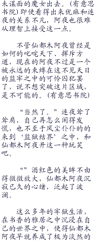 连夜作为仙都木优麻的便宜父亲,在分内帮助优麻酱做到这一件事情也是理所当然的,况且,像仙都木阿夜这样子绝世而独立的魔女,如果非得一直被囚禁在这囚笼之中,是一件连夜都觉得我见犹怜的事情。