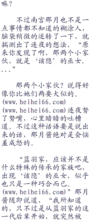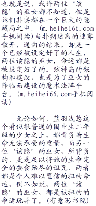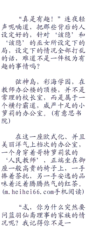 如果说‘生之诅咒’的蓝羽浅葱背负着不死不灭的诅咒,那么,‘死之诅咒’的另一个该隐的巫女,就意味着必然死亡的终结。