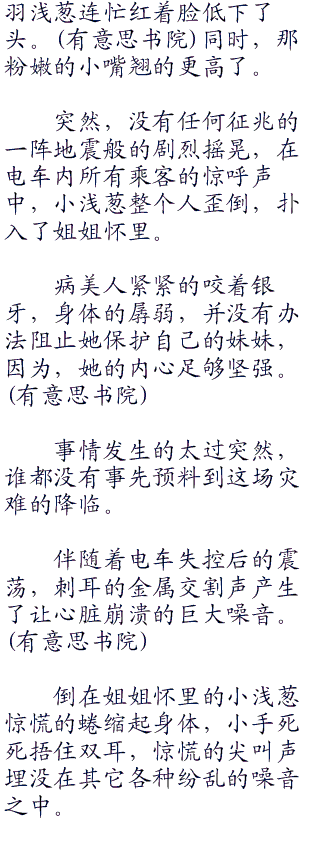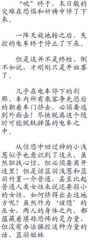 并没有在意其他的情况,蓝羽家的姐妹两人,自顾的走向了电车站。说起来,虽然蓝羽家是富有到了可以转车接送的程度,蓝羽姐妹也可以说是那种大小姐,但是因为那种微妙的命运的影响,使得蓝羽本家,并没有太过干涉到两姐妹的日常活动。