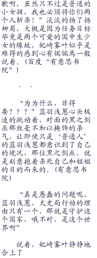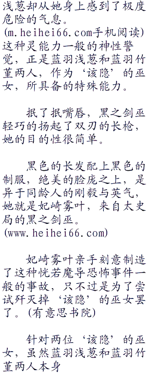 虽然黑之剑巫表面上看起来只是一个才比自己大上了2岁左右的绝美女人,但是蓝羽