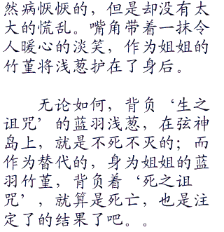 “快点,姐姐诶,趁现在我们快点出去吧!”蓝羽浅葱拉起自己姐姐的秀手,正因为耽误了不少的时间,所以才更应该在现在抓紧时间逃离开来。