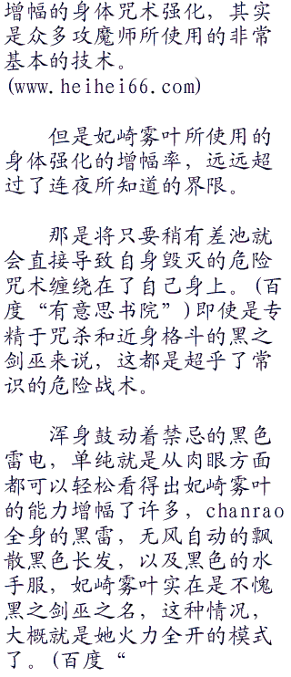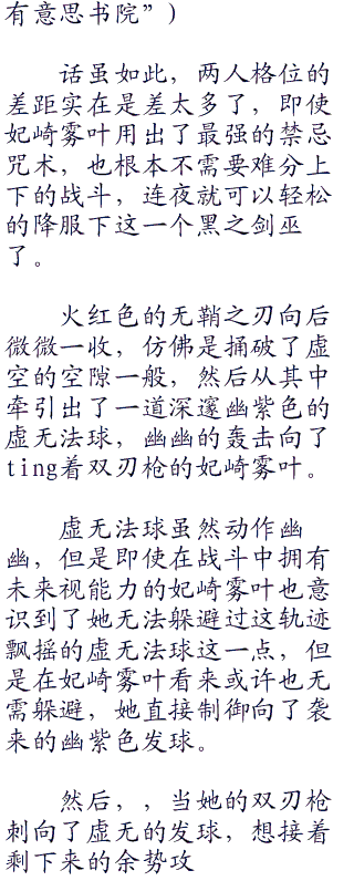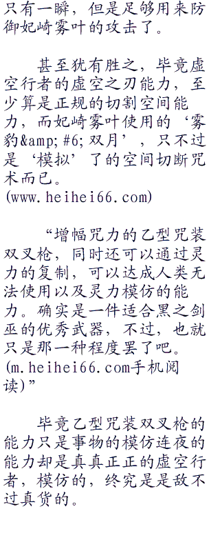 并不会因为有‘双乙型咒装双叉枪’这种特殊的武器,就显得让妃崎雾叶强大的原因是出于她所持的武器之上,而是合适的武器,和武者,本来就是相辅相成的东西。
