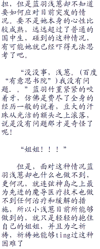 看到这样的症状,蓝羽浅葱顿时感到一股极其不详的预感萦绕心头!