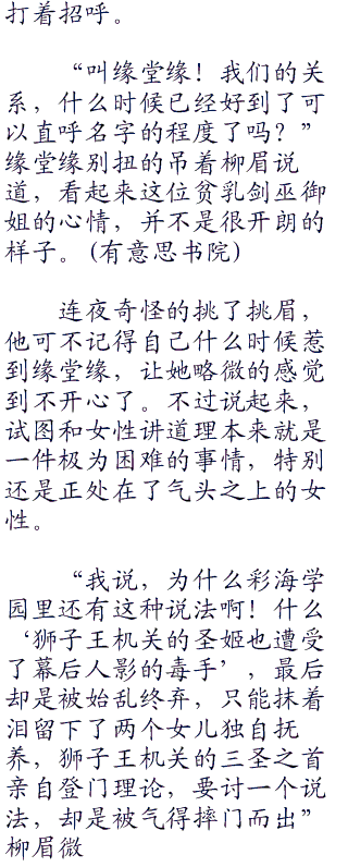 彩海学园之内,这种供人茶余饭后闲谈的都市传说流传同样并不少,大抵上所有的校园里都会有各种各样的神鬼乱谈吧,诸如什么威严满满的高等部萝莉英语老师南宫那月是一个超级厉害的魔女,抬手间就可以禁锢诸天星辰,诸如平时平易近人的初等部体育老师笹崎岬是一个可以双手放出气功波,一脚可以踢裂土地造成天崩地裂的超级拳仙。