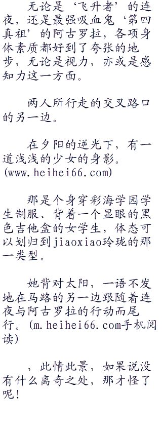 强烈的阳光,从即将染成夕色的西边天空照下。这是八月最后的星期一,天气晴朗。室外气温早就超过人类的体温,即使到了夕阳渲染的时刻,还是完全不见降温的迹象。毕竟是四季常夏的亚热带人工岛,弦神岛上这一种气候,对于本来就畏惧阳光的吸血鬼来说,就是相当不友好的。