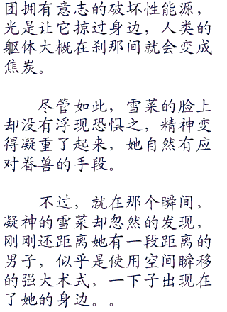 大概是被两个下里巴人的混混围堵得心烦了吧,况且姬柊雪菜在意识到自己的行踪被发现了的情况下,又是想要快点找个位置躲起来,于是少女微微的挑起了柳眉,伸出手,并喊出了咒语。