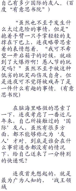这个时间点,这个情况下,会是哪一位人士给自己送来了国际性的货物呢?连夜可不觉得