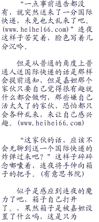 这哪里是一份快递,而是一份‘特别’的快递啊!连夜看着搬运下来的大型沉重金属箱子扶了扶额。