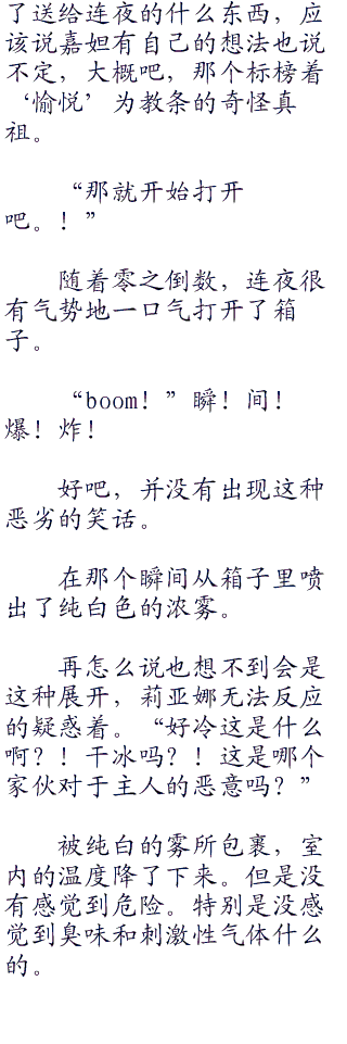 事情调转到十分钟之前“零零零”,带着不经人事的姬柊雪菜购买完了必备的日用品之后,和阿古罗拉一起返回家里的连夜,则是碰上了这么一个东西。