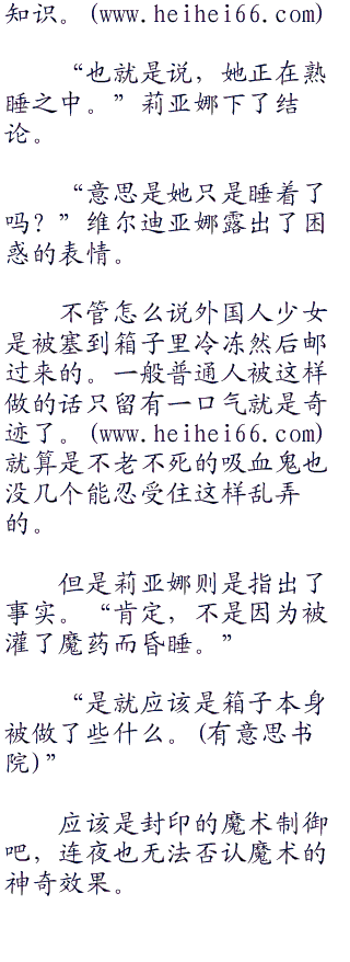 “体温正常。心搏数没有异常。无外部损伤。检出背景脑波,θ波以及Δ波。根据推测确定睡眠深度为第三阶段。”莉亚娜这样子说着。因为之前考古工作的特殊性,应急的医疗知识,莉亚娜还是掌握了不少的,具有与正式医生相同的医疗