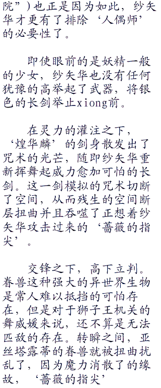 当然也有可能是其他的情况,但是连夜并不希望还有人试图获得人偶师的机巧人偶什么的,与眷兽共生的人工生命体,只需要有亚丝塔露蒂一个人就够了,她是不可复制的。同样的,纵使是‘天部’和三大真祖再一次合作,也不可能制造出第二个第四真祖这样子的人造真祖出来。