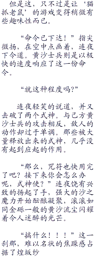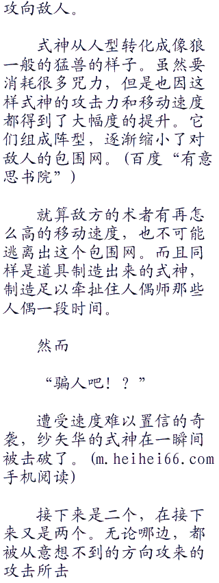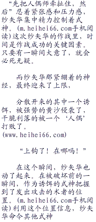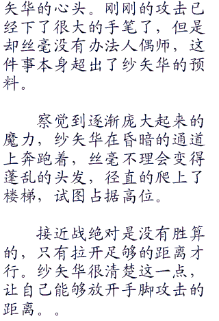 复数位的强大‘人偶’,以及本身所具有的强大空间魔术能力,偏偏和使用这种程度的敌手相遇,这完全超出了纱矢华的预期。