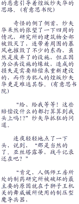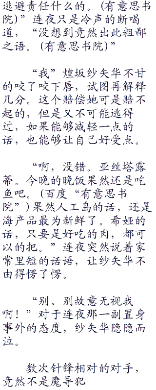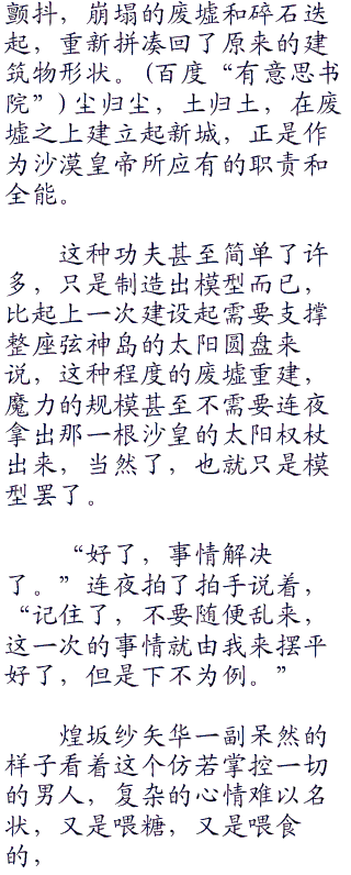 “既然如此”纱矢华勉强的咬了咬下唇,有些不甘心的说道,“那我就相信人偶师已经死了好了。”即使心高气傲的她,也必须承认自己之前是太过武断了。
