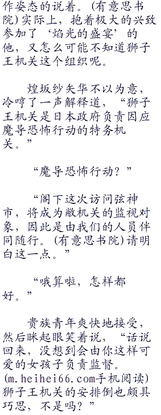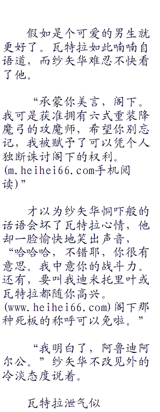 贵族青年的话里显得全然不在乎,让少女微微发出叹息。“我叫煌坂纱矢华,狮子王机关允我使用‘舞威媛’的名号。”
