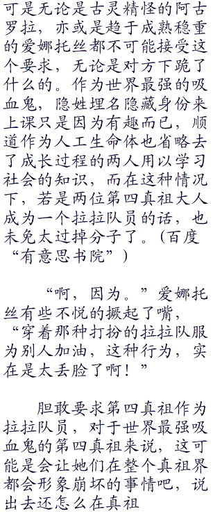 “所有男生都向你下跪?”连夜对于雪菜的说明感到了愕然,可以想象那种数十个男生排列在走廊之上,成一定的序列下跪的‘壮观’景象,雪菜无可奈何的接受了也是没有办法的结果。