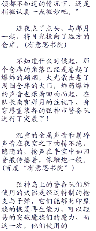 因此,弦神市的夜晚虽还不至于被称为魔族的世界,但在夜晚的时候,魔族的曝光率自然是比普遍的白天高。自然而然“零零零”的,活动着大量魔族的夜晚,也就相对的不平静些了。