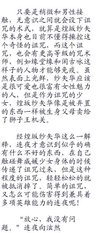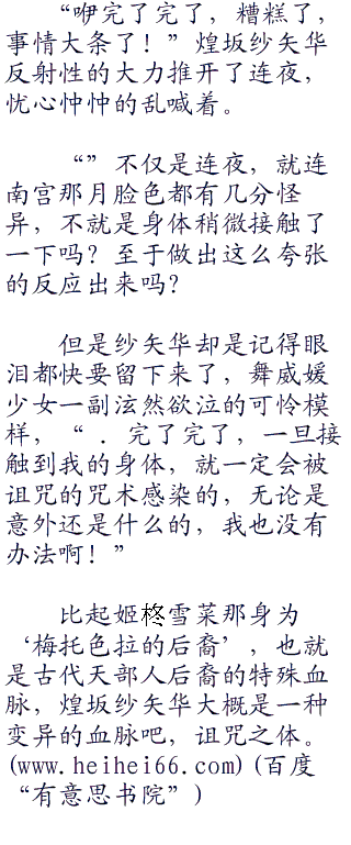 事实也的确不是煌坂纱矢华看到连夜大发神威,打败了真祖一下的最强吸血鬼瓦托拉而发了花痴什么的,主要还是因为应该是在也身边的姬柊雪菜,当然了,或许也有几分因为之前在人偶师的工房的第一次接触而好奇的缘故,但是心高气傲的舞威媛少女,必须是不想承认这一点的。