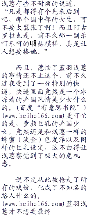 被美誉为了‘公主’的国中转校生,蓝羽竹堇并不是没有听说过,对方那过于端正的美貌,是无论如何挑不出刺来的。不过当然了,病美人觉得自己可爱的小浅葱,自然是不可能比不上姬柊雪菜的,两者在少女的魅力上可谓是各有千秋,但是算起来在不少方面,蓝羽浅葱还是有着优势之处的。