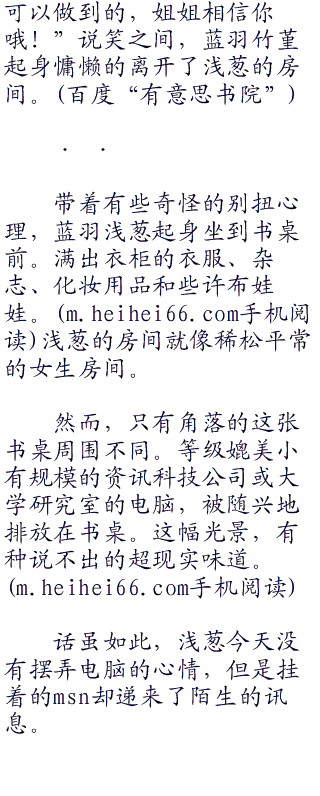 刚刚洗完澡还留有水份的头发裹着浴巾,蓝羽浅葱没好气的趴在床上巴拉巴拉的胡乱鼓捣着。