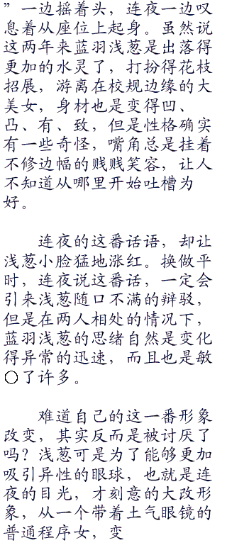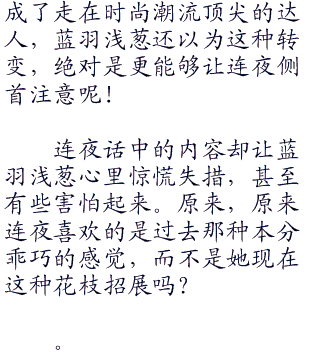 自己的单方面提议,连夜可没给浅葱拒绝的机会,擅自的做出决定,然后翘着脚坐在椅子上,单手扶着下巴,一副嘚瑟的样子。