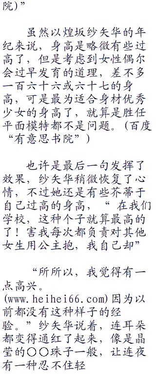 面对煌坂纱矢华那有些唐突的问题,连夜梗住声音回答不出,都说女人是最为神奇,有的时候也最为脱线的生物,连夜就很难理解怀中的舞威媛少女为何会突然问出这个问题。