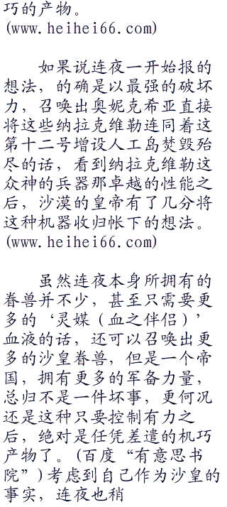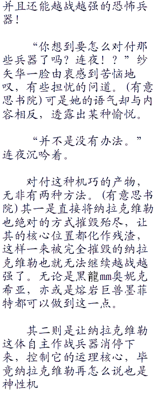 纳拉克维勒的机巧却是是匠心独运,可见超古代人的智慧却是可以说是超新科技的产物,通过煌坂纱矢华之前对一体纳拉克维勒的破坏,以及那一纳拉克维勒的自我进化,已经足够的说明了一点,