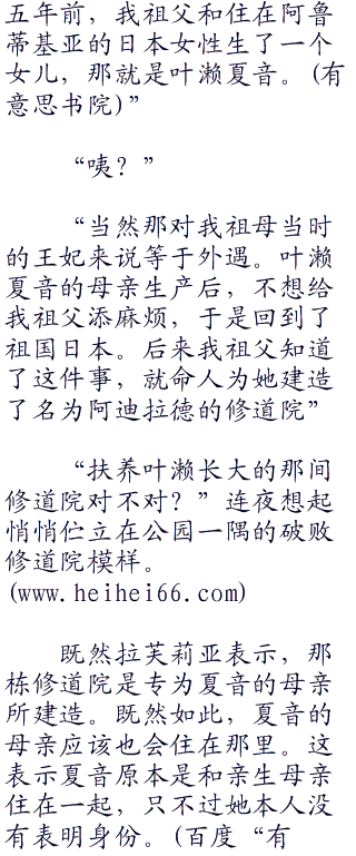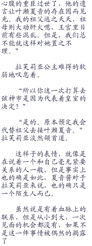 而之所以会恶意的攻击拉芙莉亚的缘故,并不是在于魔导士工塑试图勒索绑票的金钱什么的,而是看上了拉芙莉亚那强大的灵媒血液,以及和叶濑夏音想为契合的阿鲁蒂基亚王国皇室血脉。生于阿鲁蒂基亚皇室的女子几乎无一例外,全是能力强大的灵媒。