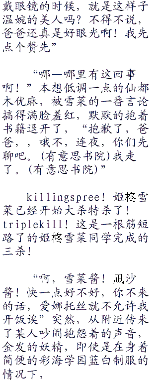 “哟呵,那不是优麻酱吗?还是应该说是pro(教授)呢?”雪菜打了个招呼说道。(注,pro,professor的缩写)