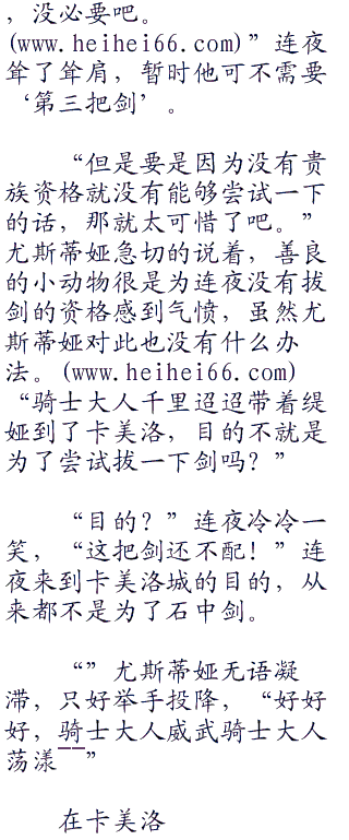 在粉发的小动物看来,虽然她只是惊鸿一瞥的连夜的一些小本领而已,但是以他那一种不可一世的勇力,要拔起深陷在了石头之中的王者之剑应该也不是什么难事。