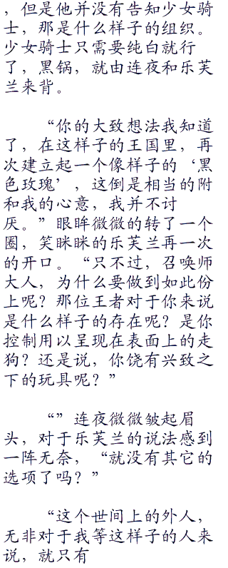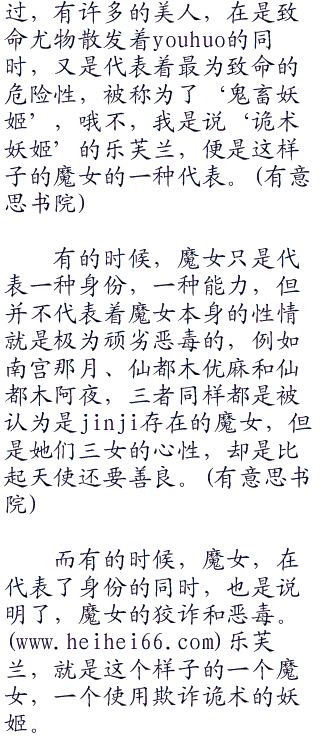 用略微沙哑,但正因为如此而充满了邪邪魅惑之力嗓音浅笑着的,那是一个拿着一根漆黑色法杖的魔法师,或者说是,魔女。