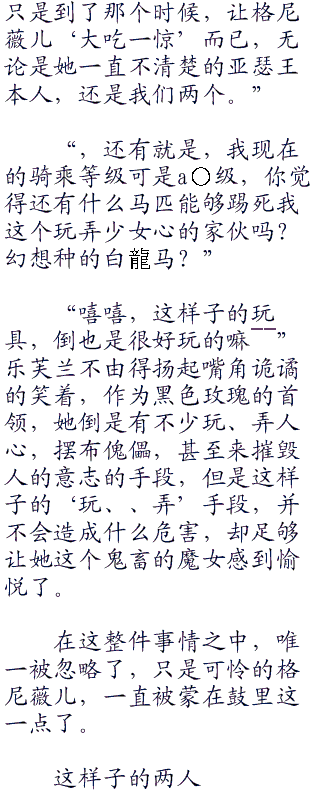 如果说连夜的这一番突如其来的行为,可以形容为‘我从未见过有如此厚颜无耻之人’的话,那么格尼薇儿的这一番表现就可以描述为‘我从未见过有如此薄颜有耻之人’。。毕竟格尼薇儿内心里虽然有着浪漫主义的情怀,但是压抑的贵族礼仪教导虽然使得她的举动和想法有几分叛逆,却并没有让她成为一个可以随意乱来的家伙。