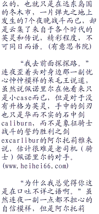 连夜轻蔑的说道,他的能力,原本是准备用以和那些人类不同时代的英灵、在世界意志的强化之下升格了的英雄来战斗的,要说他的敌人要是吉尔伽美什的话,可能还相当的麻烦,然而现在和他对抗的,就只是普通的人类而已,没有升格为英灵,也不具备可怕的宝具力量,所以对付起来简直就是无关痛痒的小喽啰而已。