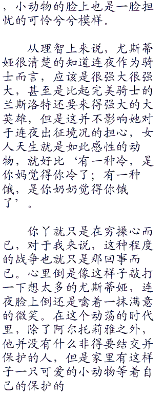 不过现在实在不是满口飚黄段子的合适时间,阿尔托莉雅的言辞,虽然是温馨无比,但是也相当的邪门。