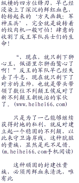 用左手支撑在马鞍之上,连夜按下方天画戟,身体一扭腰,方天画戟当即形成划出了一个弧形的杀圈划向了周遭冲过来向着他攻击的反王军队士兵,顿时,一片血花浸染喷洒。