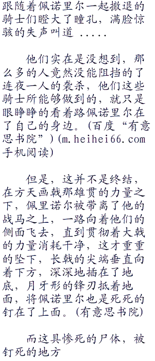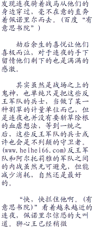 逃窜的士兵,反而呈着溃败之势退到了佩诺里尔附近,根本挡不住赤兔马的冲锋,反倒是把连“零零零”夜这个鬼神一连带到了佩诺里尔的近前。