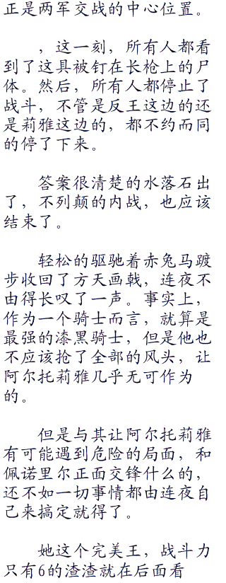 但现在这些人早已被吓破了胆,哪里还顾得上这些,只是没命的狂奔,毕竟这些人不是骑士,没有信仰什么骑士精神,只是一些普通的士兵罢了,他们没有骑士的忠诚,不可能为了自己效忠的对象毫不犹豫的献出自己的生命,而想要让他们做到像骑士那么忠诚几乎是不可能的。