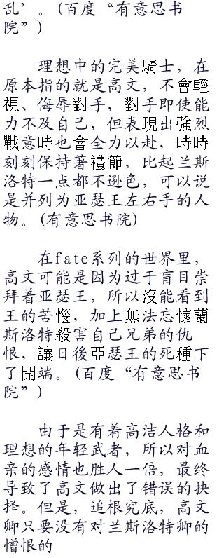 三位奥克郡国的骑士之中,特别是高文显得最为的卓越,关于这个骑士的传说也相当不少,可以说,在西方的世界,高文,既是‘白马王子’这一单词的源头,也是白马王子的代名词,可见他是多么优秀的骑士了。