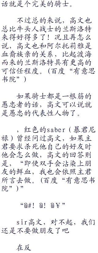 从辈分上来说,高文是比起他还要来得年轻的阿尔托莉雅