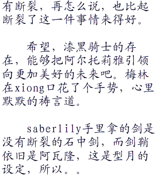 而现在的话,无论是罗马帝国的入侵,亦或是萨克逊人的威胁,都是让阿尔托莉雅随时吊着柳眉的危急情况。