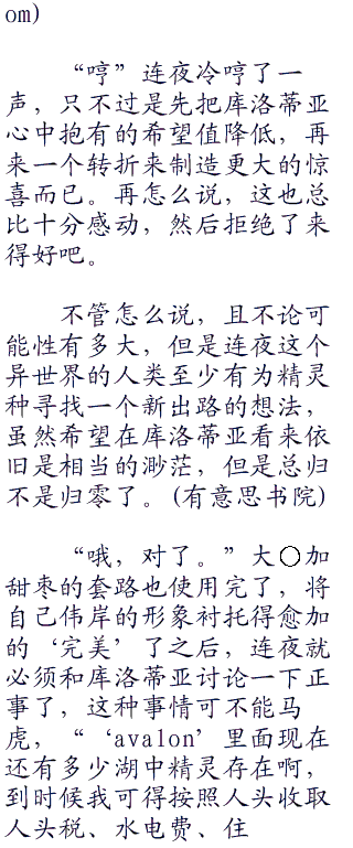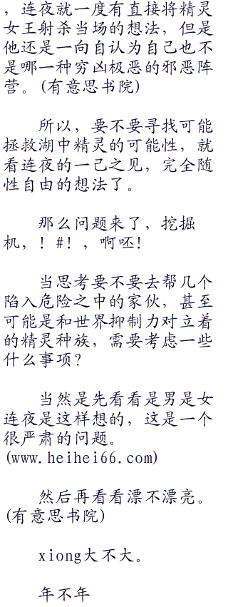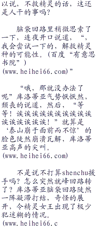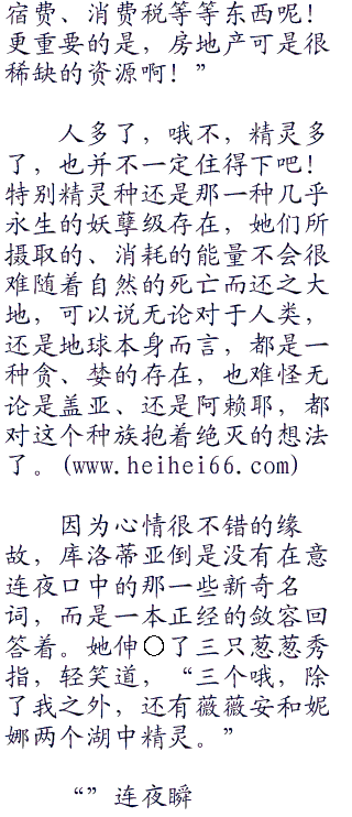 “所以,异世界的漆黑骑士唷,连夜~,你能够为我们精灵种寻找到一份存活下去的可能性吗?”精灵女王库洛蒂亚轻声的祈求道,她无从得知连夜这个局外之人,是会对精灵的灭亡喜闻乐见,围坐而看,甚至是会落井下石什么的,然而库洛蒂亚至少有尝试祈求一般的必要性,因为,给予精灵们选择的余地,可并不多。
