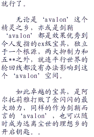 “是的,不列颠需要的是永久的和平,那么作为保障,就将能够威胁到这份和平的一切因子都消灭掉,剑鞘‘avalon’的守护和圣洁,就由圣剑excarlibur来捍卫吧。”如同誓约般,阿尔托莉雅坚定的说道。