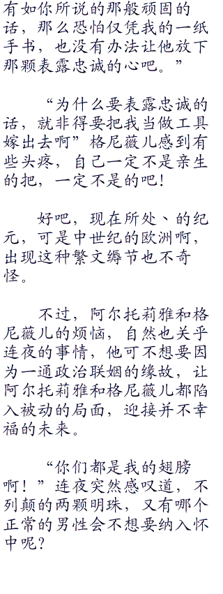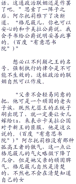 实际上,格尼薇儿也是被卡美拉公国的国王逼迫得不耐烦了,才不得不来王宫之内谒见亚瑟王。