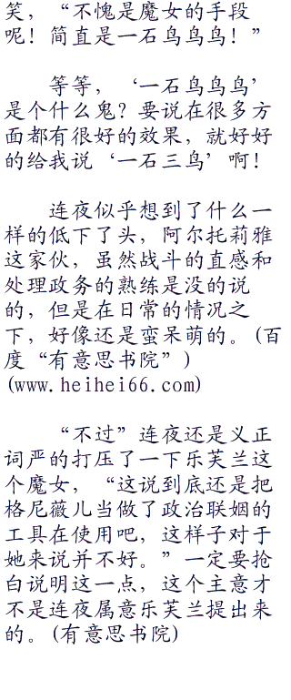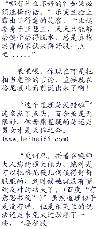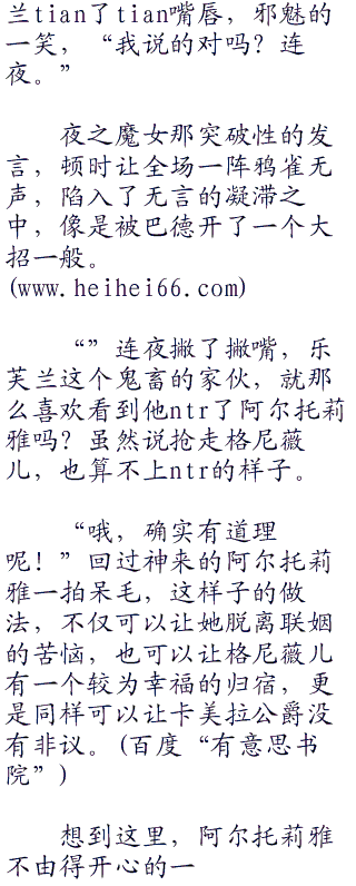 虽然呆毛王却是是从正常的视角上,深入阐述了她和格尼薇儿并非相爱的恋人,就算“零零零”联姻也不可能幸福的道理,但是这一句‘没有办法给格尼薇儿公主幸福’,总让连夜觉得可以理解成‘性、福’一般。也不是给不了嘛,就是困难多了而已。