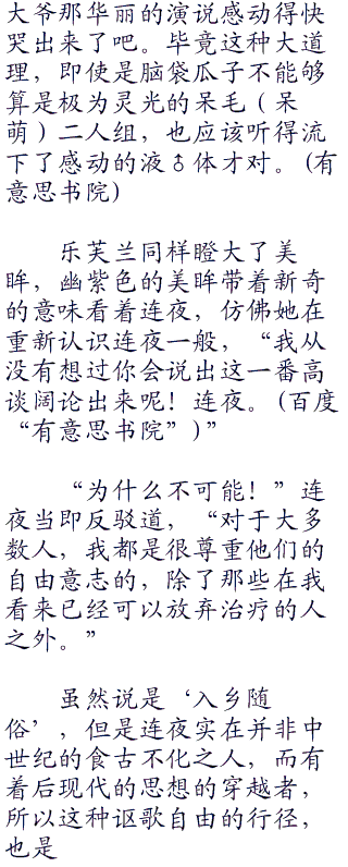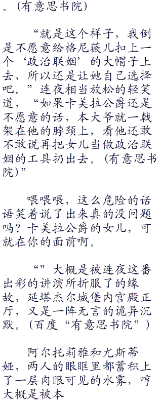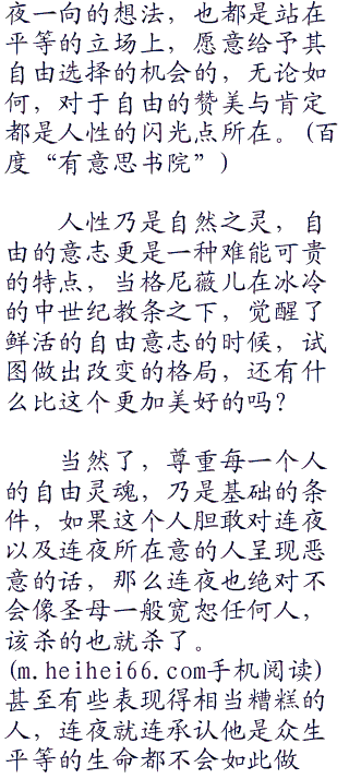 并不是觉得没有办法给予格尼薇儿幸福,或是性♂福什么的,但是连夜还是很愿意讴歌格尼薇儿的叛逆情怀的,这是任何中世纪欧洲的贵族公主没有办法突破的桎梏,但是格尼薇儿却有着独特的自由之心,对此,他一向都是很推崇的。