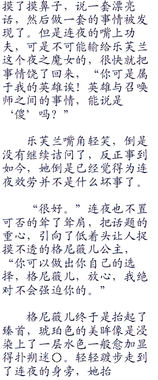 比起连夜来说,乐芙兰有的时候可能还要恶劣一些。打个比方,要是遇到美丽动人的女子的话,连夜说到底在当做玩具的时候会稍微怜惜上几分。而乐芙兰的话,遇到了美丽动人的女子,难道恶毒的魔女不是因此玩弄的愈加的开心了吗?毕竟,作为女性而言,她可不需要对同样的动人女子抱有任何的怜惜感情。