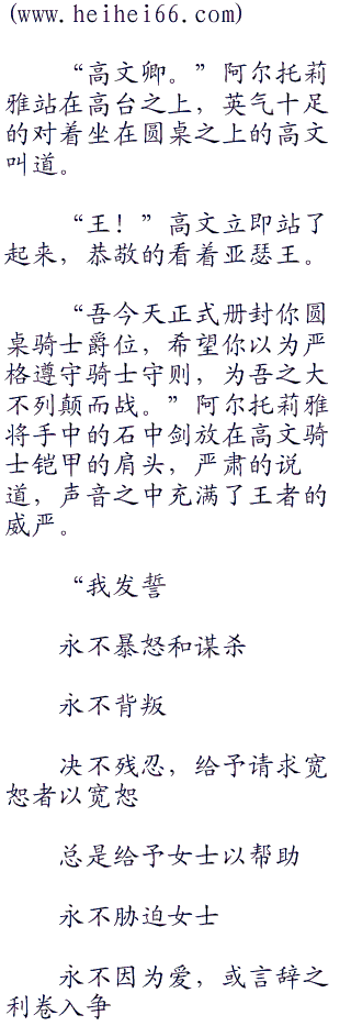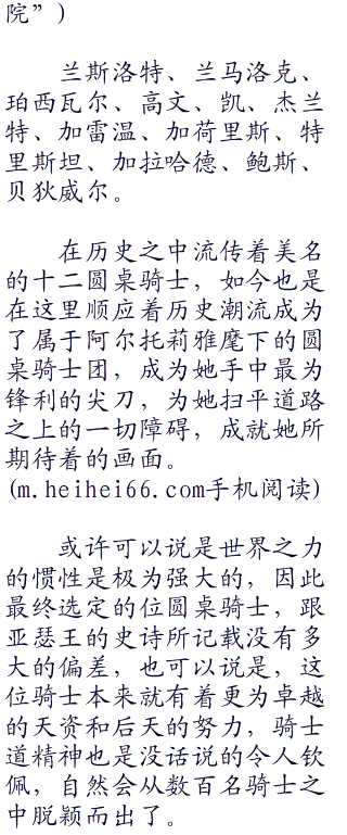 它象征着自由和和平,如今,吾在这可以容纳数百名骑士同席而坐的圆桌之上摆放了至高的十二个位置,在场的骑士和英雄们啊,展现你们的武艺,炫耀你们的剑术吧,最强的十二人将获得这至高的席位,成为大不列颠最为荣耀的骑士。