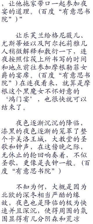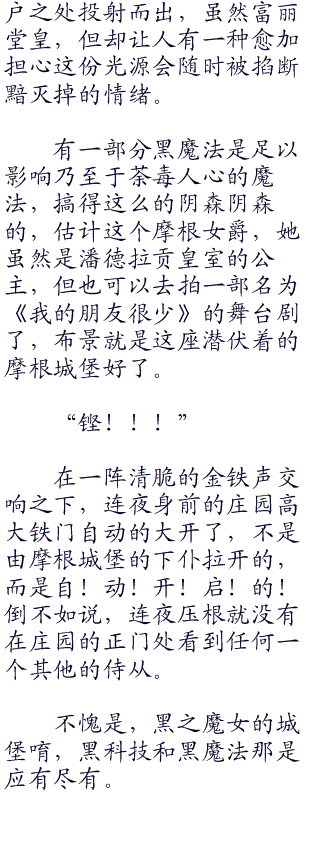 前面阐述了一大堆摩根勒菲这个魔女的危险之处,充其量就只是说明了连夜对于摩根勒菲潘德拉贡的一点点几乎可以忽略无视掉的忌惮之心,和这场宴会势必会是鸿门宴的揣测而已,并不说明他就会因为害怕这个‘女巫(witch)’,就不敢去参加这种‘鸿门宴’了。